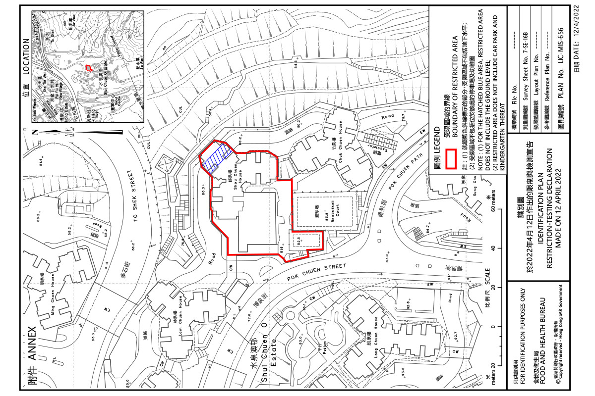 政府今日(12日)引用《預防及控制疾病(對若干人士強制檢測)規例》,作出限制與檢測宣告,自下午4時起將沙田水泉澳邨修泉樓(不包括位於該處的停車場及幼稚園)劃為「受限區域」,身處「受限區域」的人士須於晚上9時前接受核酸檢測,政府的目標是在明日下午約1時完成行動。