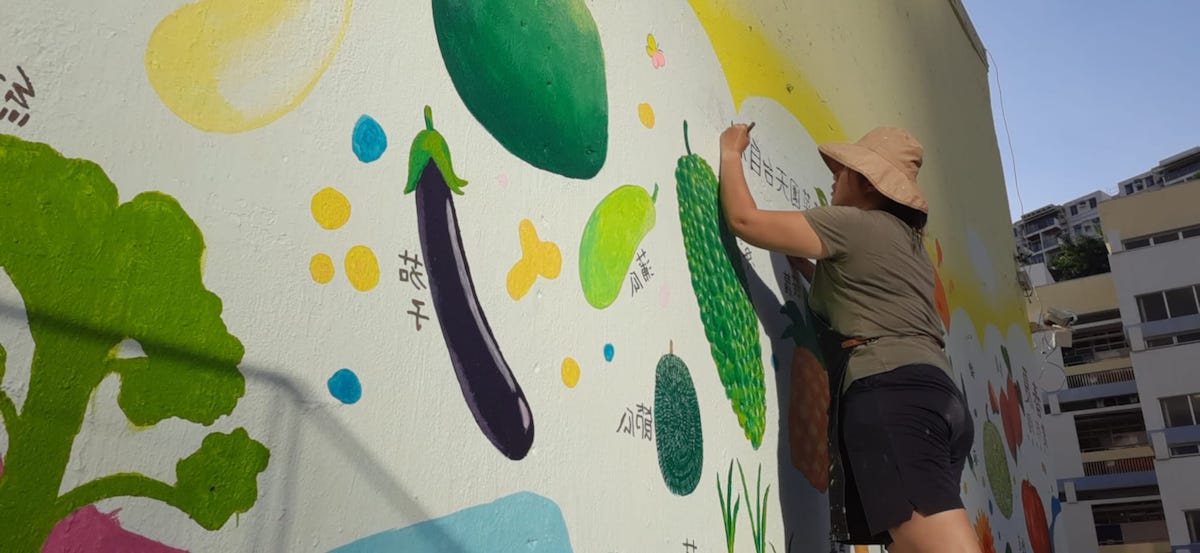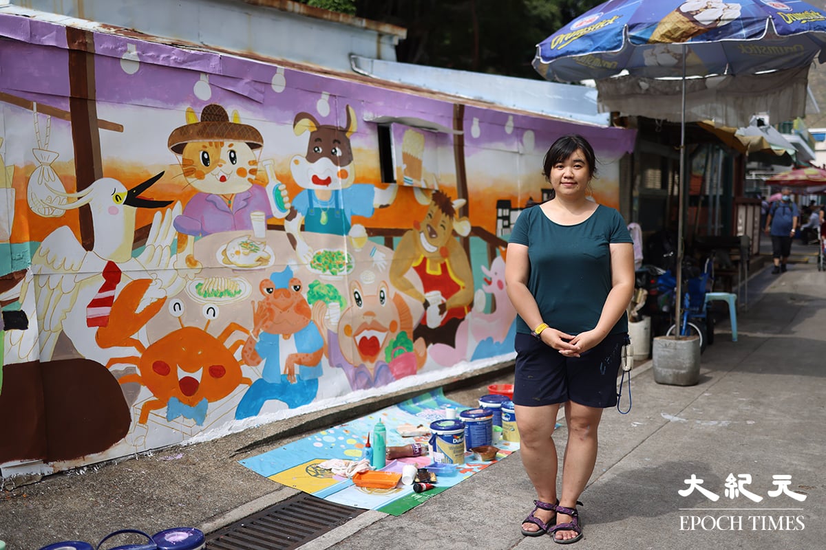 奇美從事插畫行業多年,以生動的繪畫手法繪出具有個性的動物繪本,當中不乏在本港常見的兩棲動物和海洋生物。疫情期間她亦積極參與本地藝術相關的活動,當中包括大澳壁畫製作、饒宗頤文化館的海洋文化市集和illusfair。基於興趣,奇美在一次機緣巧合之下自薦,初嘗繪畫壁畫的樂趣。她認為畫壁畫的感覺和平常在紙上或是電腦繪圖都截然不同——畫在牆身的發揮空間較大,在偌大的空間下筆令人感到身心舒暢。