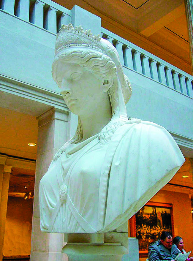 「芝諾比婭」這位征戰女王兩側展現的美德是「寬容」和「謹慎」。「寬容」代表她心胸寬闊,願意面對危險及為了崇高的理由採取行動。威廉姆斯說,專家指她的高尚行為可能是她繼承了丈夫的志業。「寬容」手持長仗,身邊站著一隻獅子,當然這代表她的勇氣。芝諾比婭的左邊是「謹慎」,指她在正確的時間選擇正確行動的能力。一條蛇纏繞「謹慎」的右臂上,代表智慧。