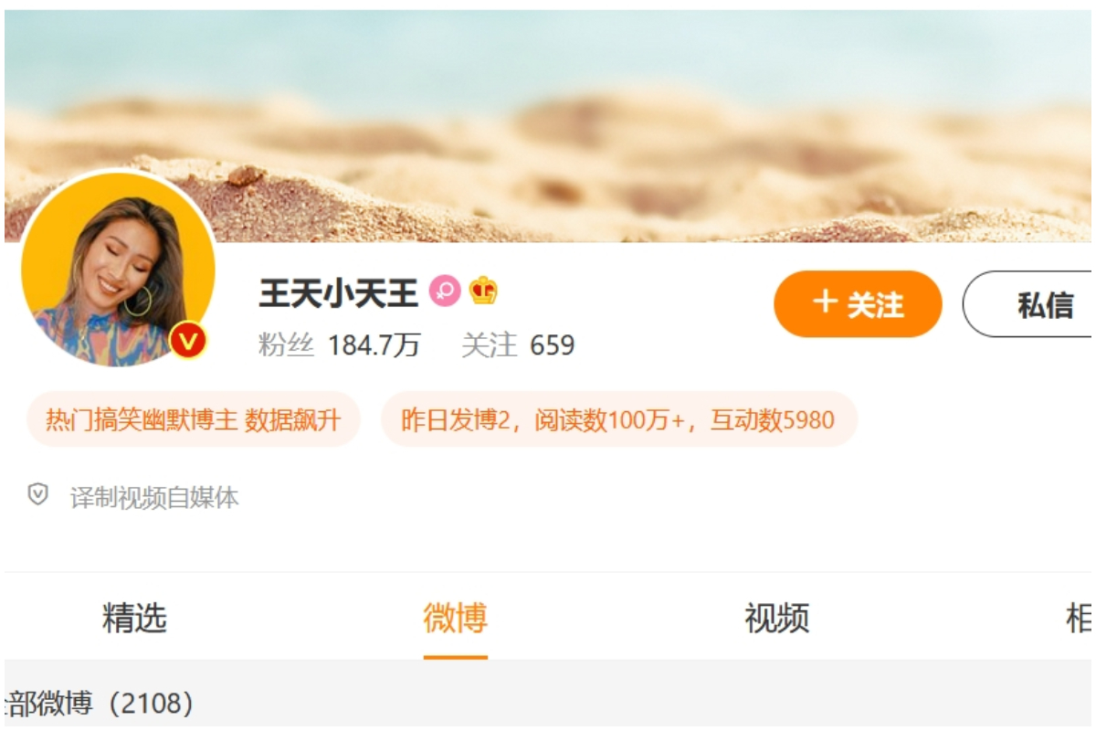 擁有185萬微博粉絲的女網紅「王天小天王」,2019年憑藉一則「中國新娘在愛爾蘭婚禮上的吐槽脫口秀」火遍全網。在上海封城期間,她常在微博分享自己的隔離生活,也轉發一些市民求助的帖文。