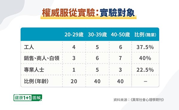 實驗對象的年齡跨度從20歲到50歲,男女都有;職業涵蓋了工人、銷售人員、白領、專業人員等;也包含了各種教育背景的人。