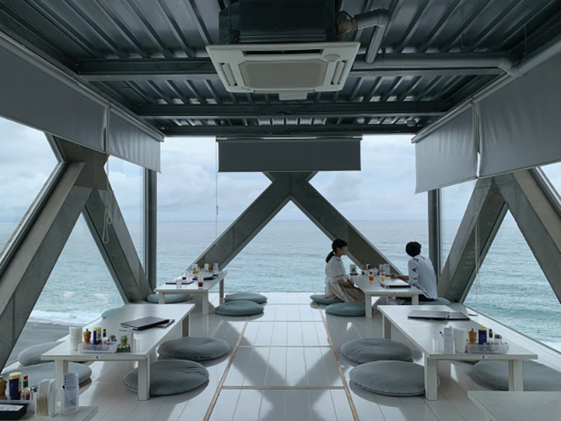 建造在懸崖邊,彷彿漂浮在太平洋海上的絕景咖啡廳。在透明落地玻璃屋內開放式的景觀,一邊品嚐著中西式料理、下午茶點心,一邊欣賞浩瀚的太平洋風光及落日,是來到高知東部不可錯過的一大享受!