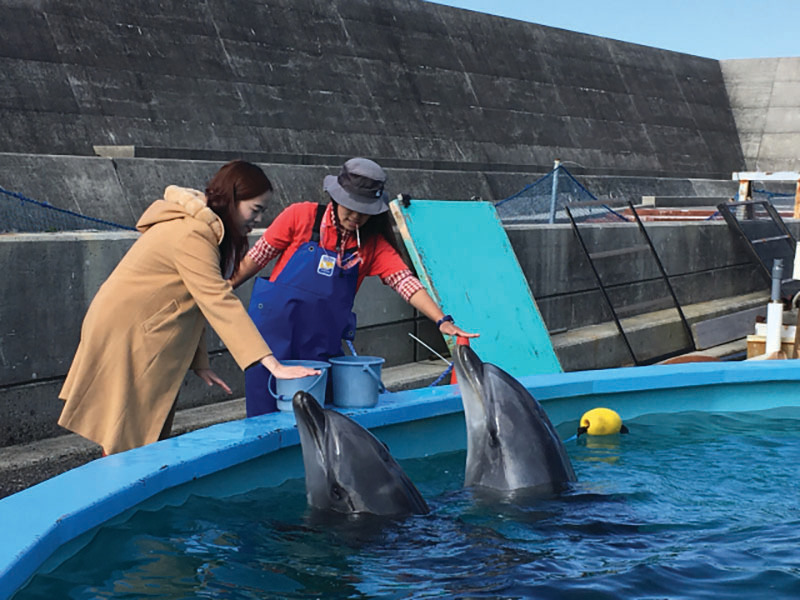 設施內飼育著4頭海豚,是一處老少咸宜、廣受喜愛且適合親子教育旅行的團體旅遊園地。一旁的「海之驛站Toromu」有附設餐廳,也可體驗高知名物「鰹魚稻草燒」,炙烤時以柑桔醋調味,或直接灑上海鹽,別有一番風味。