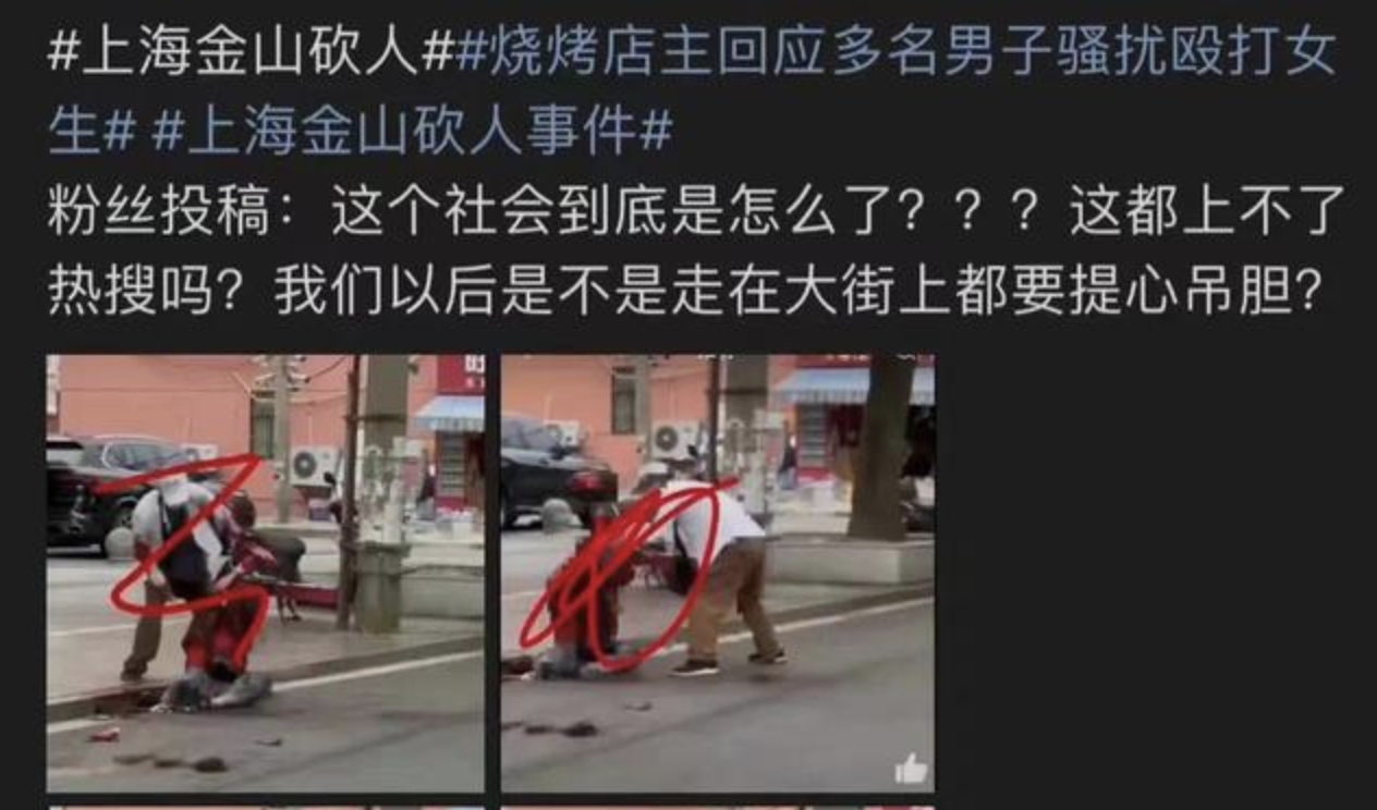「上海只允煙火氣,金山砍人不許上熱搜。」