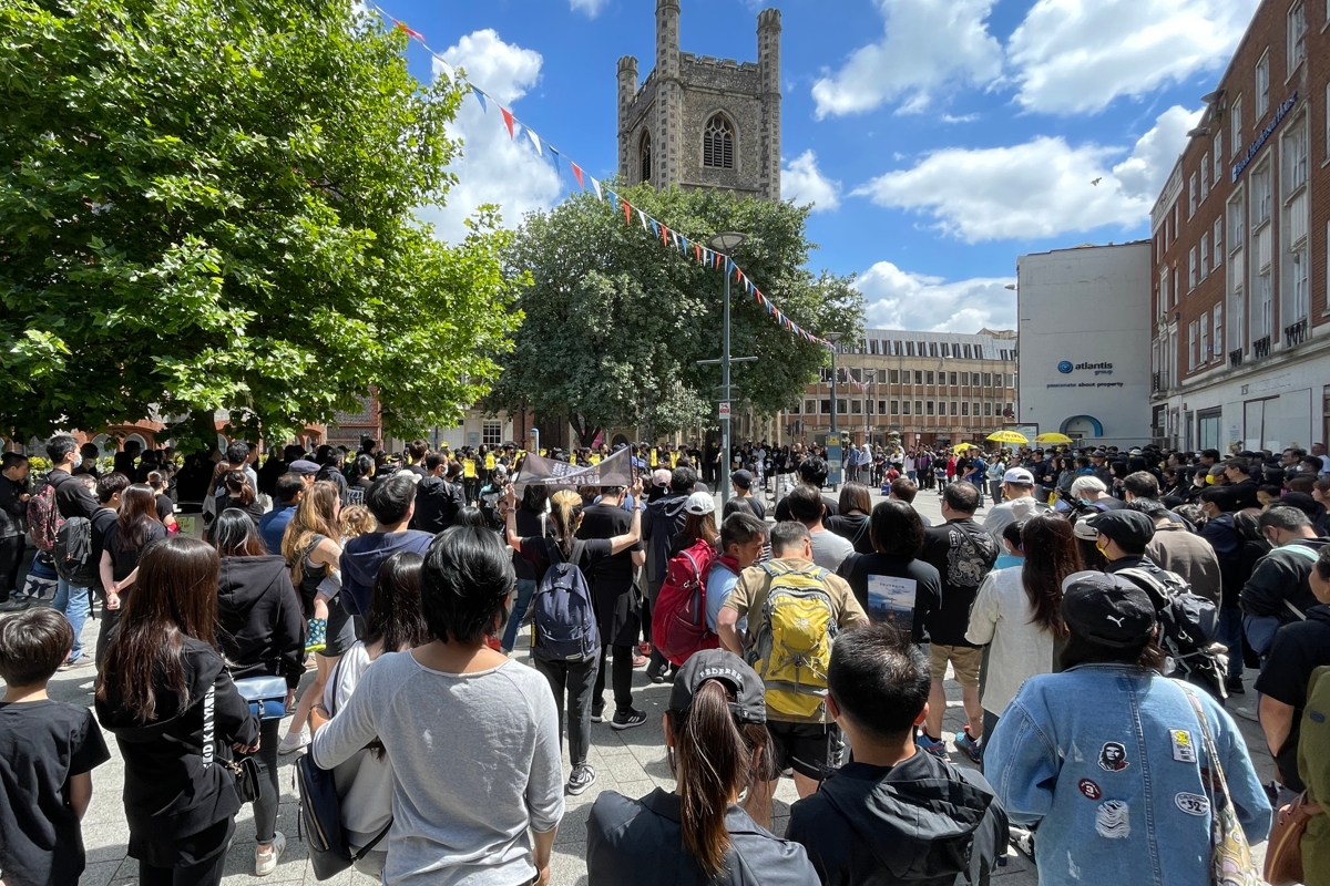 「6.12」三周年,英國多地舉辦紀念活動。其中一個港人熱門居住地英格蘭東南部雷丁(Reading)的團體「Reading UK Stands with Hong Kong」昨日(12日)中午舉辦集會遊行,並在集會前於大街上舉起紙牌,向當地人解釋反送中運動後,中共各種逮捕人的荒謬原因,活動有約400人港人及支持香港的當地人參與。