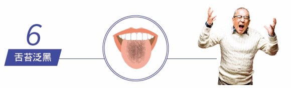 舌苔出現黑色,且有棕黑、灰黑、焦黑至漆黑等不同深淺的區別,中醫認為是熱極化火所致,表示體內熱勢嚴重,多為疾病長久累積的結果,常見尿毒症、惡性腫瘤等慢性疾病,因為病情複雜嚴重,應立即接受治療。