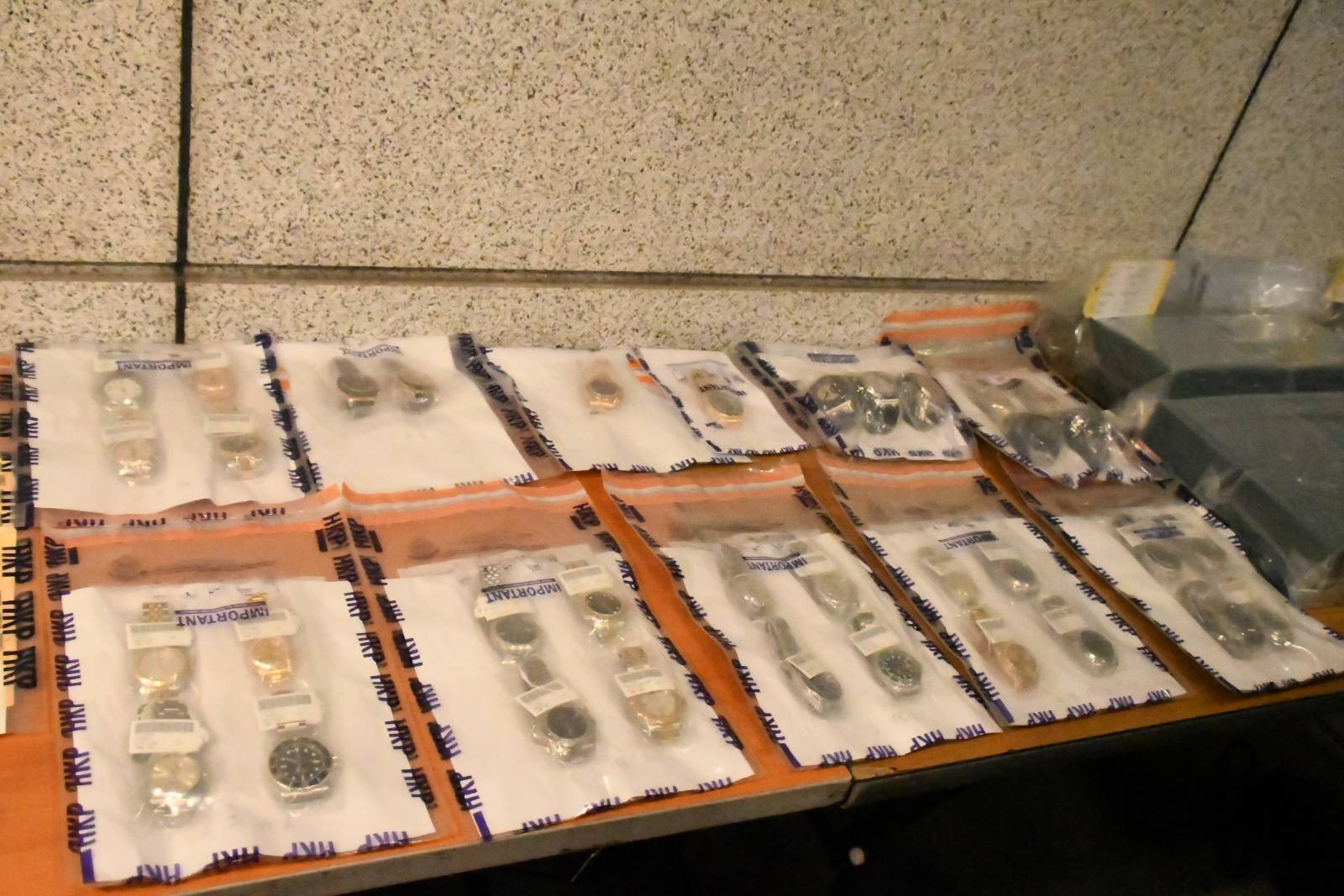 港島總區重案組第二隊總督察張嘉榮晚上在記者會表示,警方在本月4日展開拘捕行動於銅鑼灣及旺角以行劫罪拘捕4名年齡由20至35歲本地男子,部份人有黑社會背景。警方在被捕人士身上、入住的酒店和住所內,起回36枚涉案失錶以及23萬現金,相信該款項為犯罪得益。