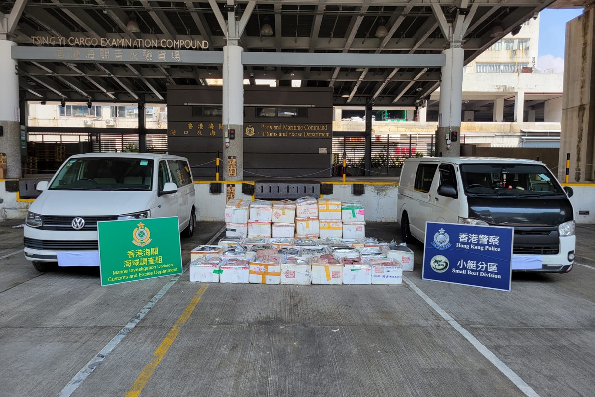 人員在現場截獲兩輛輕型貨車,並拘捕車上一名27歲姓黃本地男司機和一名37歲姓劉本地男司機,涉嫌 「處理貨物意圖協助他人輸出未列艙單貨物」。兩人正被扣留調查,案件交由香港海關繼續跟進。