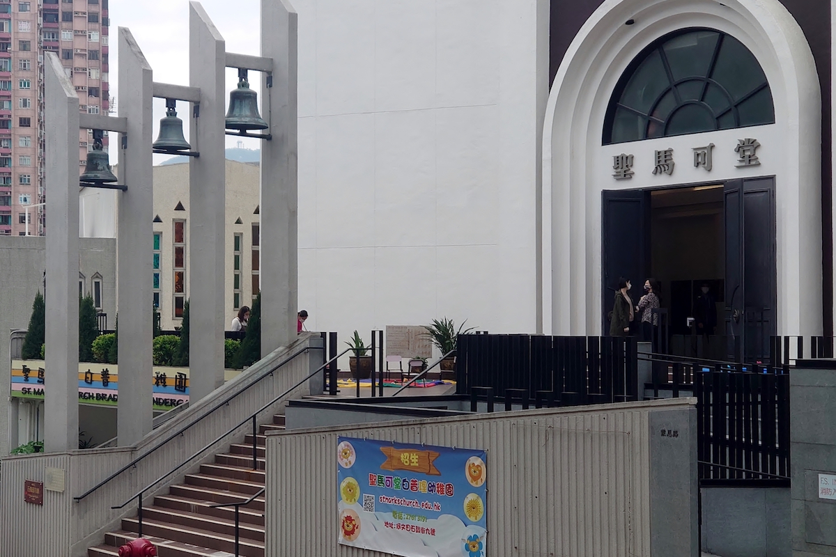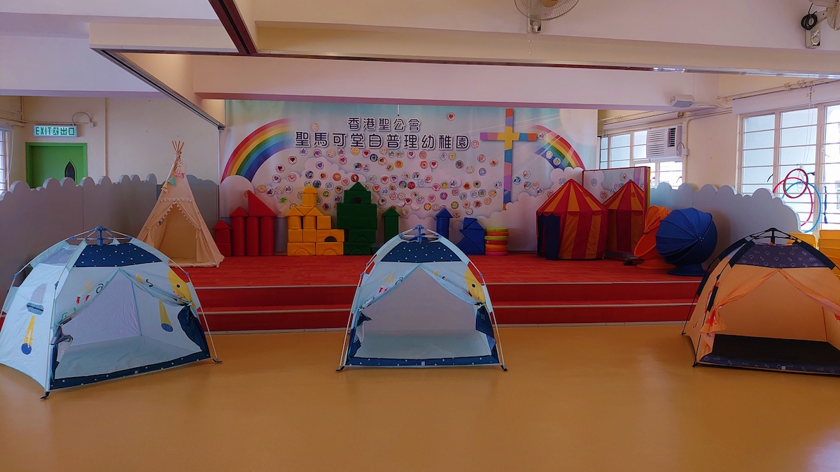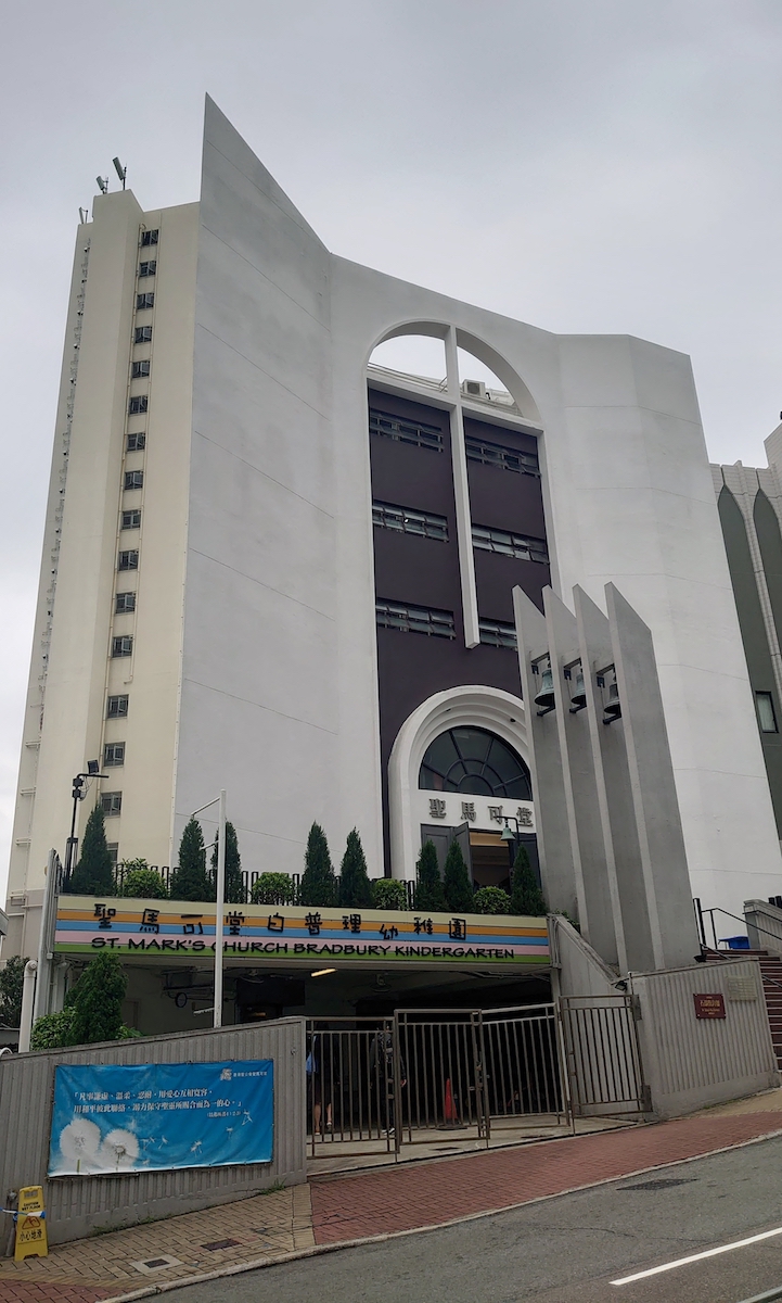 而在參觀聖馬可堂白普理幼稚園及聖馬可堂期間,除了幼稚園學生所需的活動空間及設施外,亦有獨特的地方可以留意。首先是整個教堂的設計概念,來自一本翻開的聖經。而在大門側掛有3口古銅鐘,據紀錄在1862年已開始於中環畢打街大鐘樓使用,在1913年因擴闊皇后大道中而拆卸,後輾轉由李守文醫生購入,在新堂落成時掛上,寓意聖父,聖子及聖靈三位一體。◇
