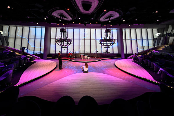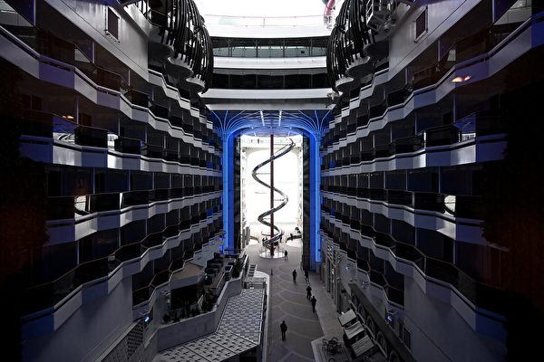 圖片顯示,10月24日,世界歐洲號甲板上擁有游泳池,內部有劇院、俱樂部及滑梯等設施。