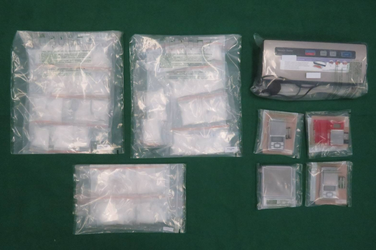 海關人員押解該名被捕男子到附近一個住宅單位搜查,再檢獲約900克懷疑冰毒,以及一批毒品包裝工具。