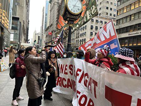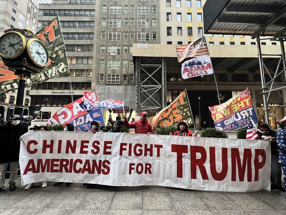 11月15日,美國前總統特朗普在佛州府邸宣布參選2024年總統大選,他的紐約支持者當天下午來到曼哈頓第五大道特朗普大廈前集會,表達他們支持特朗普的立場,其中有不少華裔面孔。這些人表示,無論特朗普是否決定參加2024年的總統大選,他們都支持。