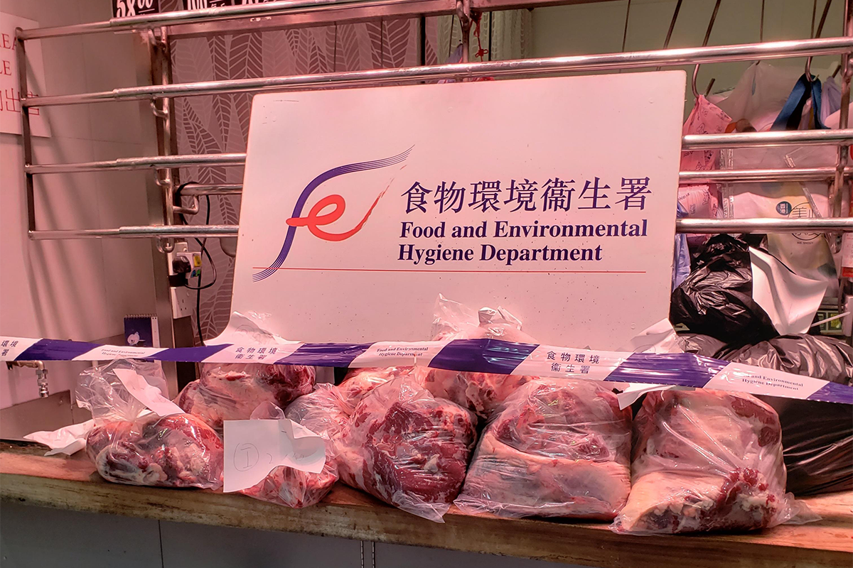 食環署周四(15日)於沙田區向懷疑以冷藏肉充當新鮮肉出售的持牌新鮮糧食店採取行動,檢獲約347公斤懷疑新鮮肉和冷藏肉,並正展開程序取消該新鮮糧食店的牌照。