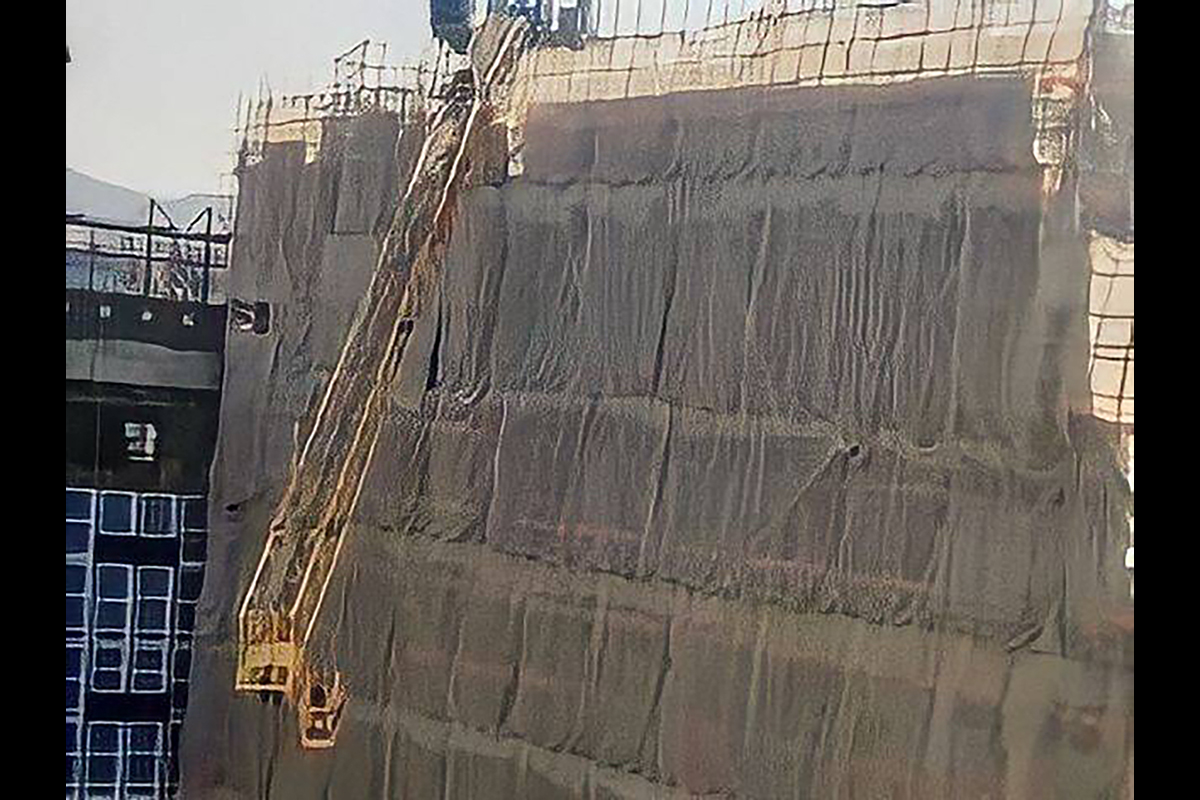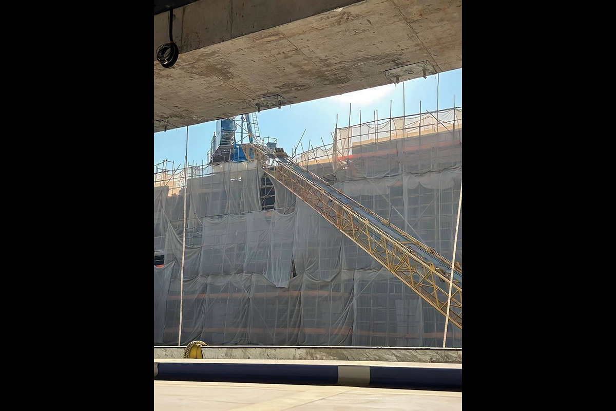 今日(28日)早上流傳多張圖片,疑似位於將軍澳至善街的入境處大樓地盤,其中一棟建築物天台的巨型天秤倒塌,壓住部分棚架,暫時未接獲傷亡報告。本報正就事件向警方、建築署及勞工處查詢。
