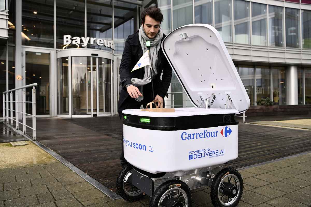 在比利時布魯塞爾附近的扎芬特姆(Zaventem)的企業村(Corporate Village),比利時家樂福(Carrefour)正在部署自動駕駛機械人來交付小額在線訂單。