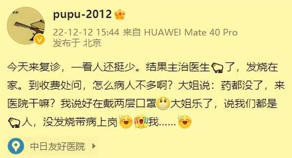 肖雲去年12月12日曾在微博自曝前往醫院複診,表示自己的主治醫生發燒在家,收費處的工作人員也染疫,帶病上崗。