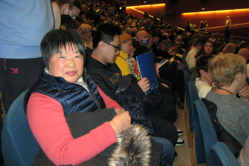 2023年2月1日在西班牙聖塞瓦斯蒂安庫爾素禮堂(Auditorio Kursaal),在來自浙江的陳蘭英和孫子蔣清宇一起觀看了美國神韻環球藝術團的演出,他們是從網站上看到演出消息的,隨即決定前來觀賞,並買了最好位置的票。