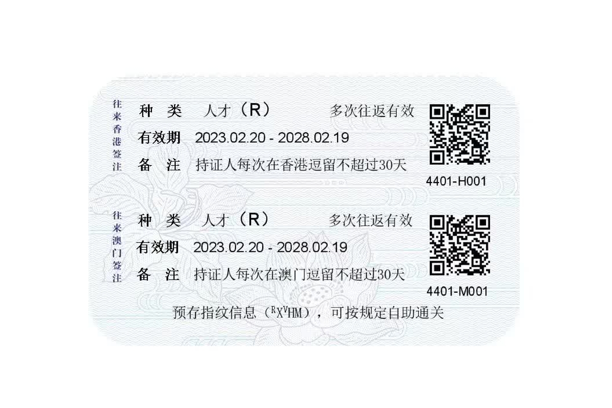 當中傑出人才可以獲發有效期5年的簽注,科研、文教、衛健人才可以獲發有效期3年的簽注,法律、其它類人才可以獲發有效期1年的簽注。