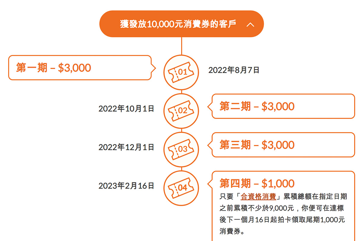 另外,在今年2月1日或之後「合資格消費」總額達標的市民,最快要到3月16日起才能拍卡領取最後一期消費券。