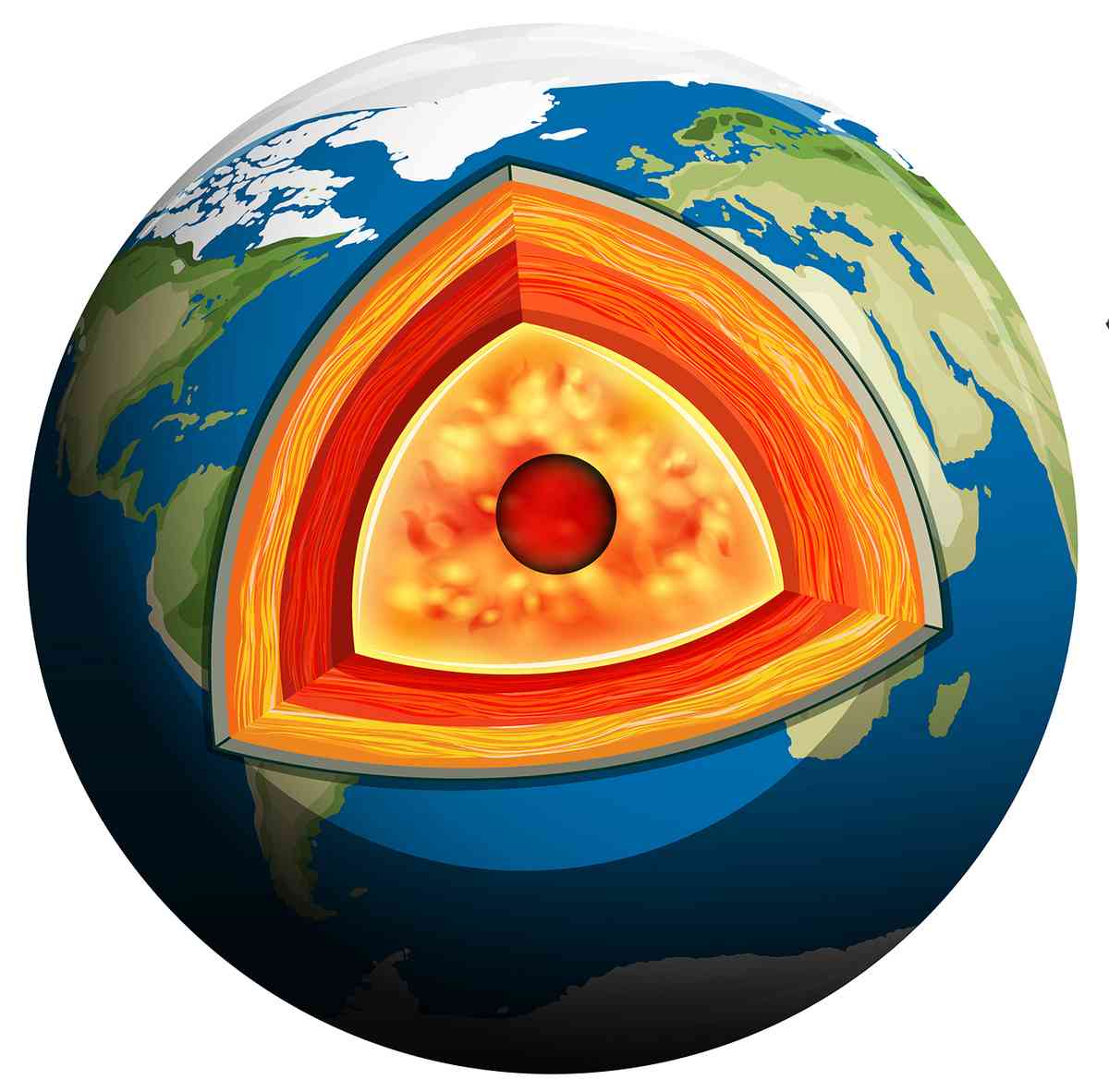 在這之前,地球的結構假定為有四層:外殼、地幔、外核和內核。內核直徑1,220公里,由密度極高的鐵和鎳組成,溫度約為5,426攝氏度。