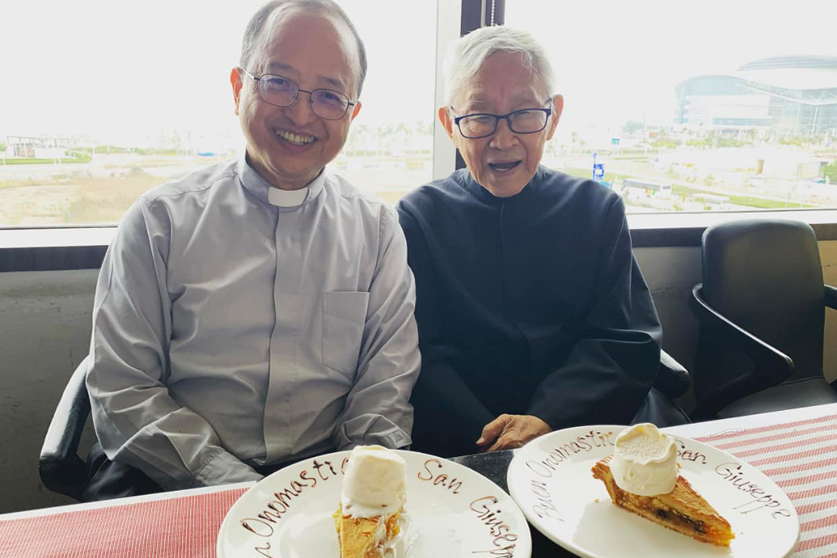 陳日君昨晚發文,祝大家聖若瑟節快樂,並感謝各位的祝賀和關心,貼文的照片顯示他面帶笑容與慈幼會中華會省省會長吳志源神父合照,面前有一份甜品。