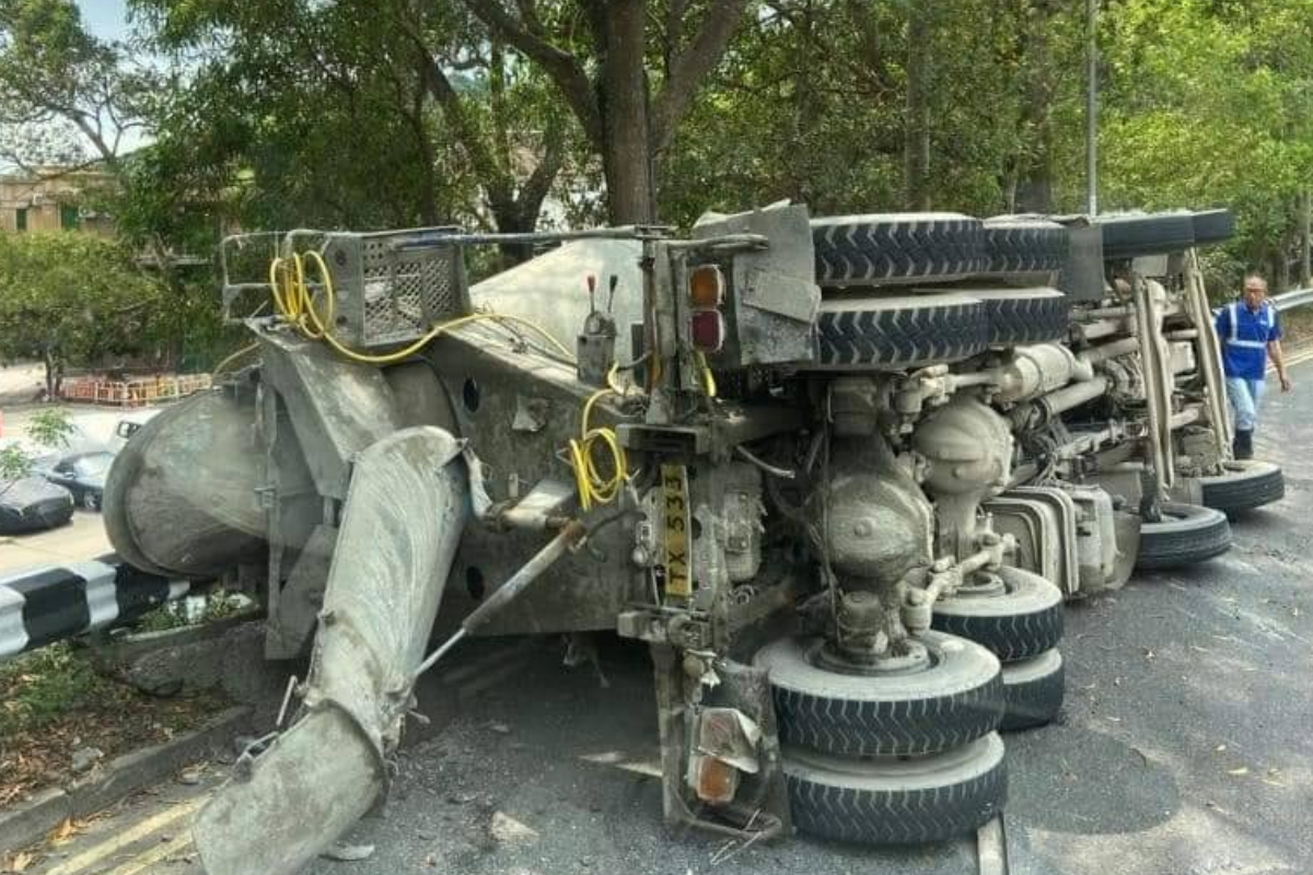 現場為清水灣道近大埔仔一個迴旋處,事發於中午接近12時半,一輛田螺車駛經上址時失事翻側,車頭擋風玻璃碎裂,碎片雜物散落一地,部份混凝土傾瀉於馬路上。