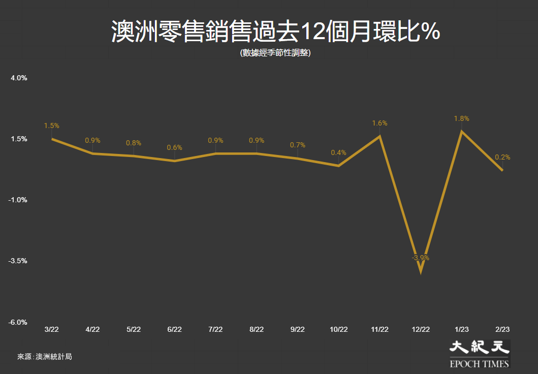 ABS零售統計部門主管Ben Dorber表示:「經歷了前三個月的波動,2月零售銷售維持於持平狀態。」