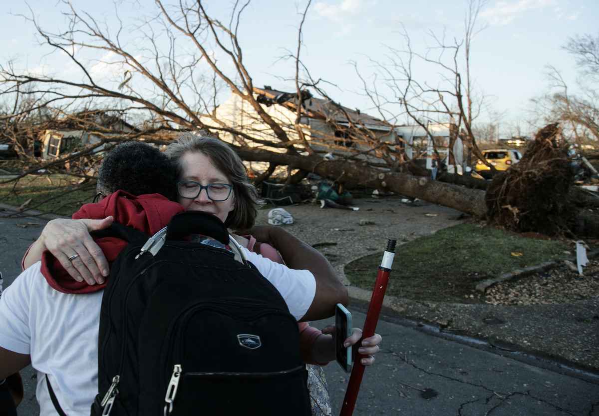 居民Ashley說,當龍捲風經過時,她和丈夫、孩子以及他們的狗擠在一間小浴室裏,「祈禱並互相告別,我們以為我們已經死了。」 一棵倒下的樹嚴重損壞了他們的家,但他們沒有受傷。