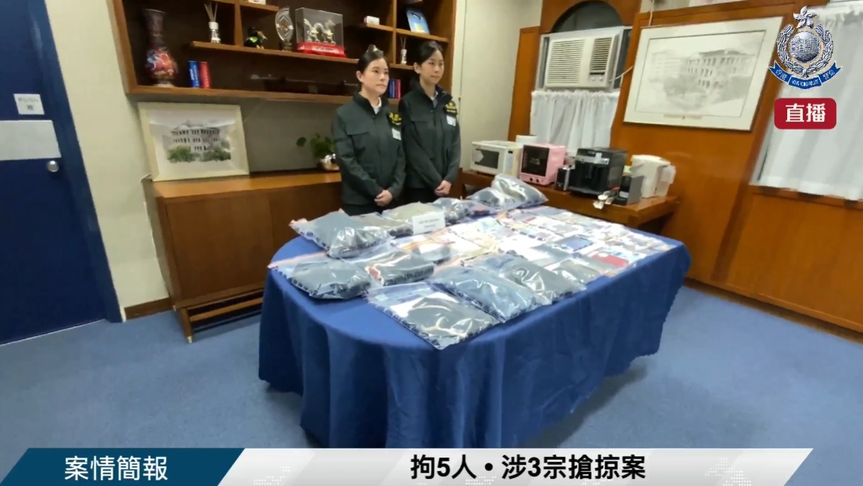 警方以搶劫掠拘捕5名大陸人,年齡介52歲至54歲,相信與過去一個月發生於多區的3宗街頭搶奪金鏈的案件有關。