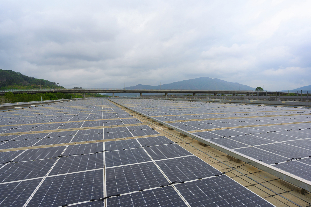 港鐵指將在今年內完成5個太陽能發電設施,遍布香港島、九龍及新界,其中元朗八鄉車廠已大致完成安裝,包括逾2,100塊柔性太陽能版。