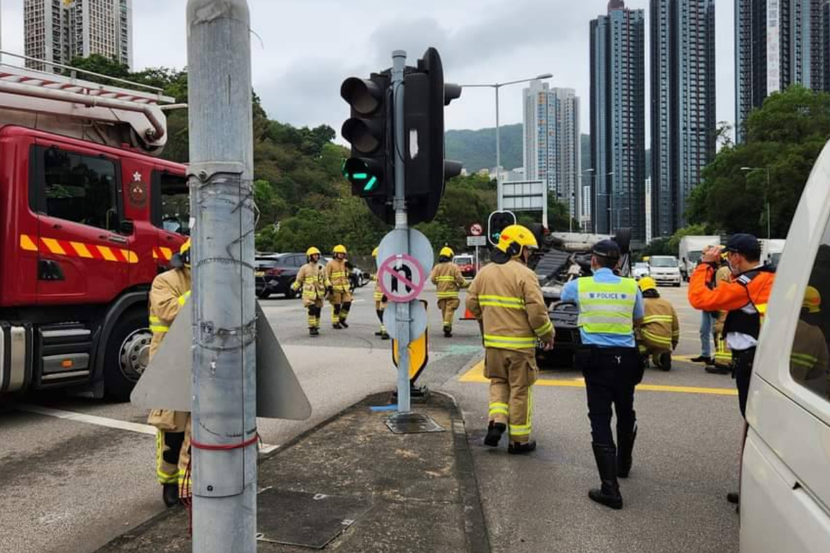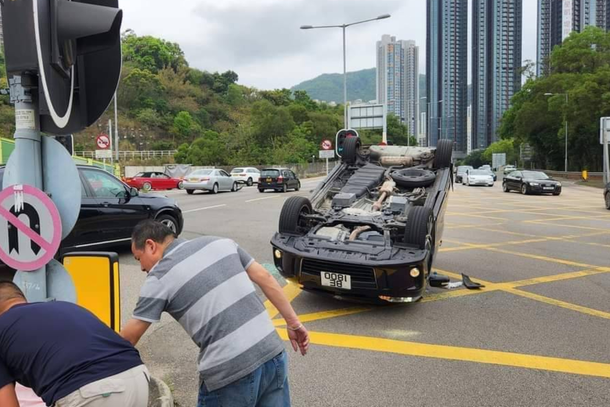 火炭路近樂景街交界今午(10日)發生交通意外,一輛私家車失事四輪朝天,涉事私家車司機及一名女乘客由救護車送院治理,警方正調查交通意外成因。
