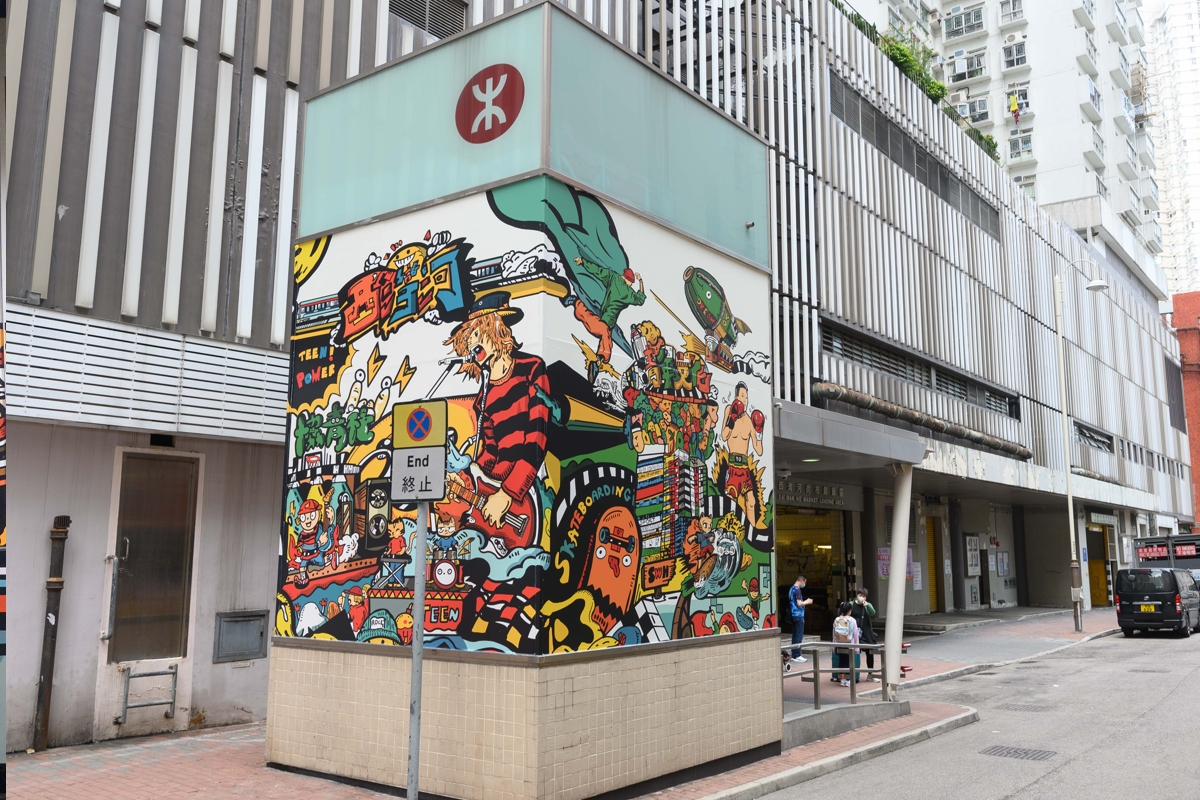 協青社總幹事鍾鳴達表示,西灣河有不少舊建築及文化標記,今次以現代塗畫風格的複雜線條及色彩,突顯西灣河區昔日的情懷及文化特色,是以藝術拉近舊區及現代社會。@