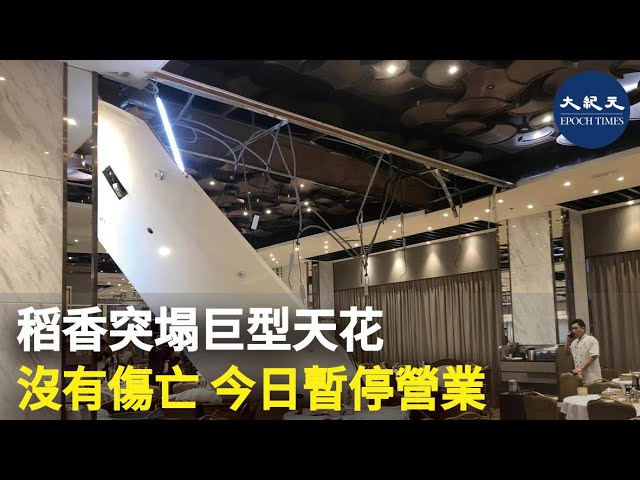 粉嶺一間酒樓今早(17日)發生冧天花意外,未造成傷亡。酒樓其後拉起圍板,並且宣布今日暫停營業。@