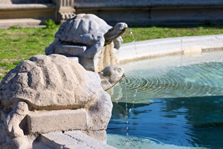 海洋生物的裝飾是花園和噴泉的常客。例如石海龜噴泉,石海龜在多個噴泉都可見到。