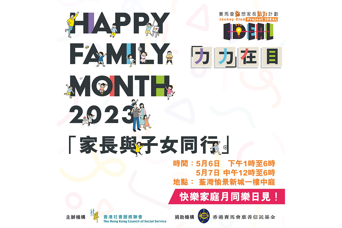 為了響應5月15日的國際家庭日,計劃將5月訂為「快樂家庭月」,並將舉辦快樂家庭月同樂日2023 暨家長培力嘉許禮,藉以感謝夥伴機構在過去兩年付出,及表揚家長積極參與計劃。年度主題「家長與子女同行」,意為共建生命價值,與時並進。家長與孩子共同面對並探索他們的經驗、情感世界,成為孩子安全的後盾,從而深化家庭功能。