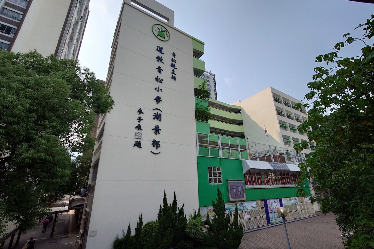 道教青松小學(湖景邨)位於屯門湖景邨,和上期介紹的迦密唐賓南紀念中學同在邨內的湖昌街上,步行距離不需一分鐘。學校是一所資助的全日制道教男女子小學,教學語言以中文為主。2022/23學年,學校提供總數25班,小一至小二及小四至小六均有4班,小三有5班,學校小一派位學額有100個,統一派位及自行分配的學額約各半,學校校訓為辦學團體——道教香港青松觀屬校通用的「尊道貴德」。