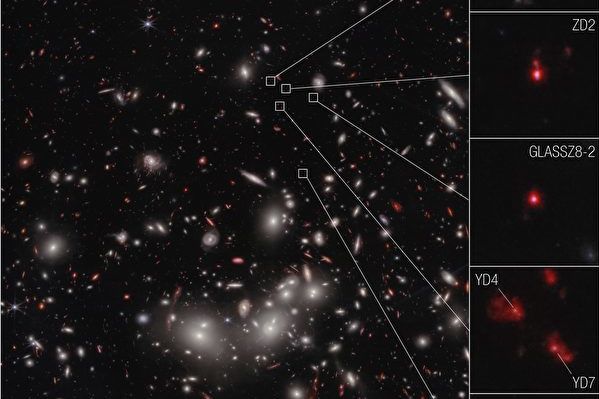 現在,美國太空總署(NASA)的占士韋伯太空望遠鏡(JWST)確認了一個含有七個星系的原始星系團(protocluster)的距離,這個星團是於大爆炸後僅6.5億年時形成的。天文學家稱這個距離為「紅移 7.9」。該發現於4月24日發表於《天體物理學快訊》期刊(Astrophysical Journal Letters)。