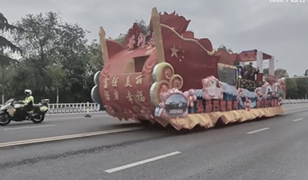 近日,河南南陽鄧州市宣稱舉行首屆世界月季博覽會花車巡遊。兩名男子將現場拍攝的影片配上哀樂發布到網上,結果兩人被官方拘留、罰款。網傳巡遊影片顯示,不少花車上寫著中共的宣傳標語,移動電視中也在宣傳中共。