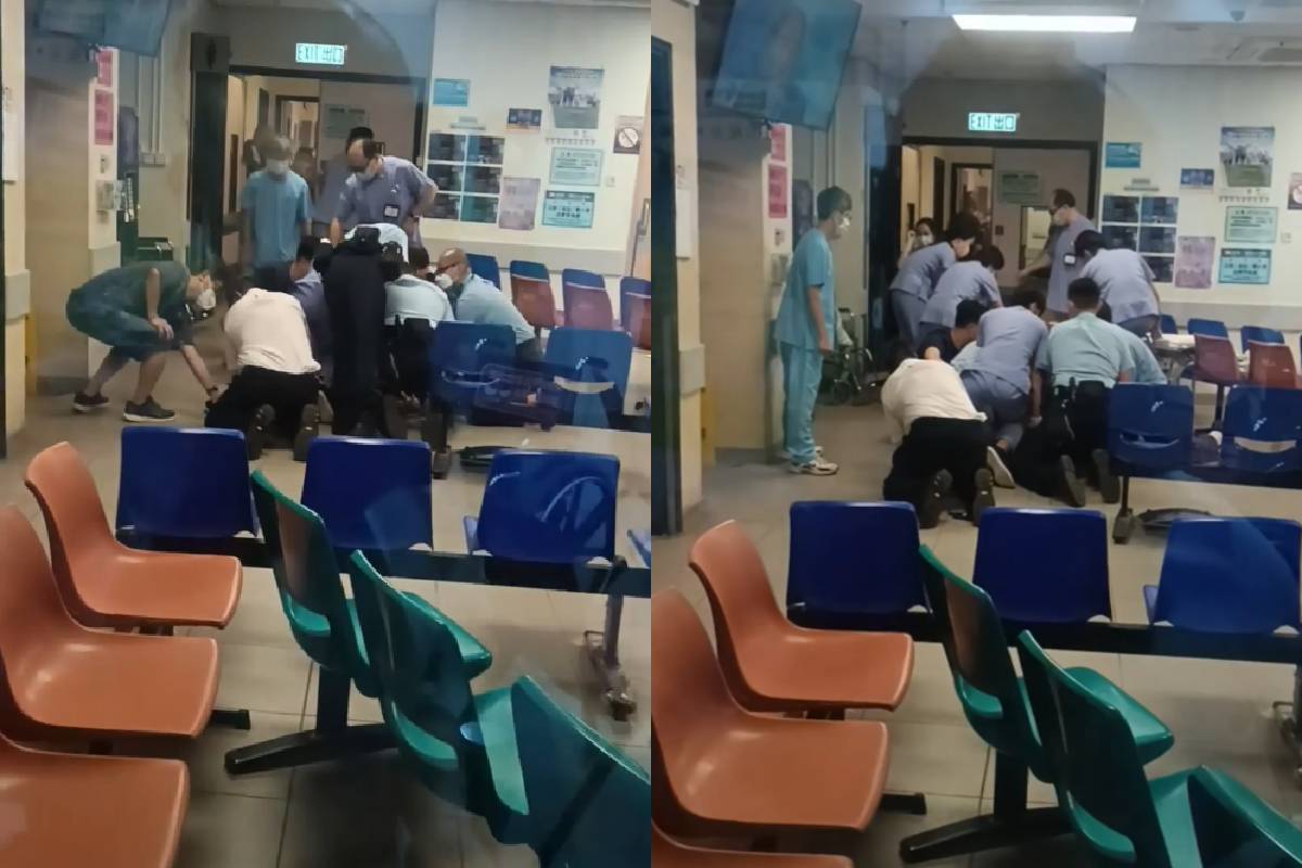 現場為觀塘聯合醫院急症室,昨晚11時許,64歲麥姓男子在院內與醫生發生爭執,突然情緒激動,揮舞剪刀,多名醫護及警員趕至,將他制服地上,其間一名保安員手部受傷,拒絕就醫。