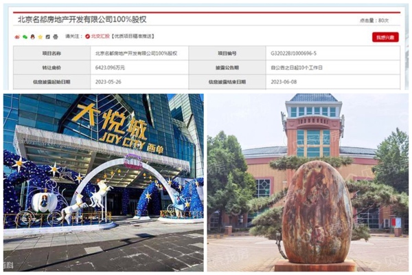 北京產權交易所信息顯示,5月26日,大悅城控股旗下子公司香港鵬源發展(越秀)有限公司轉讓北京名都100%股權,轉讓底價為6,423.096萬元,信息披露結束日期為2023年6月8日。