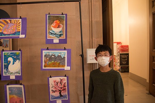 今年12歲的Sebastian Hong,在這所學校上課後班,他的畫畫作品展示在劇院的大廳,他表示,自己最喜歡畫畫,也非常喜歡這所學校。#