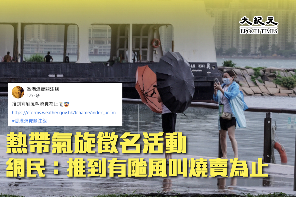 天文台舉辦熱帶氣旋名字徵集活動,市民由即日起至下月31日,可到活動網站提交建議,經整理及評選,入圍建議名字將在下一階段供市民網上投票,以選出「合適及具香港特色」的熱帶氣旋名字。