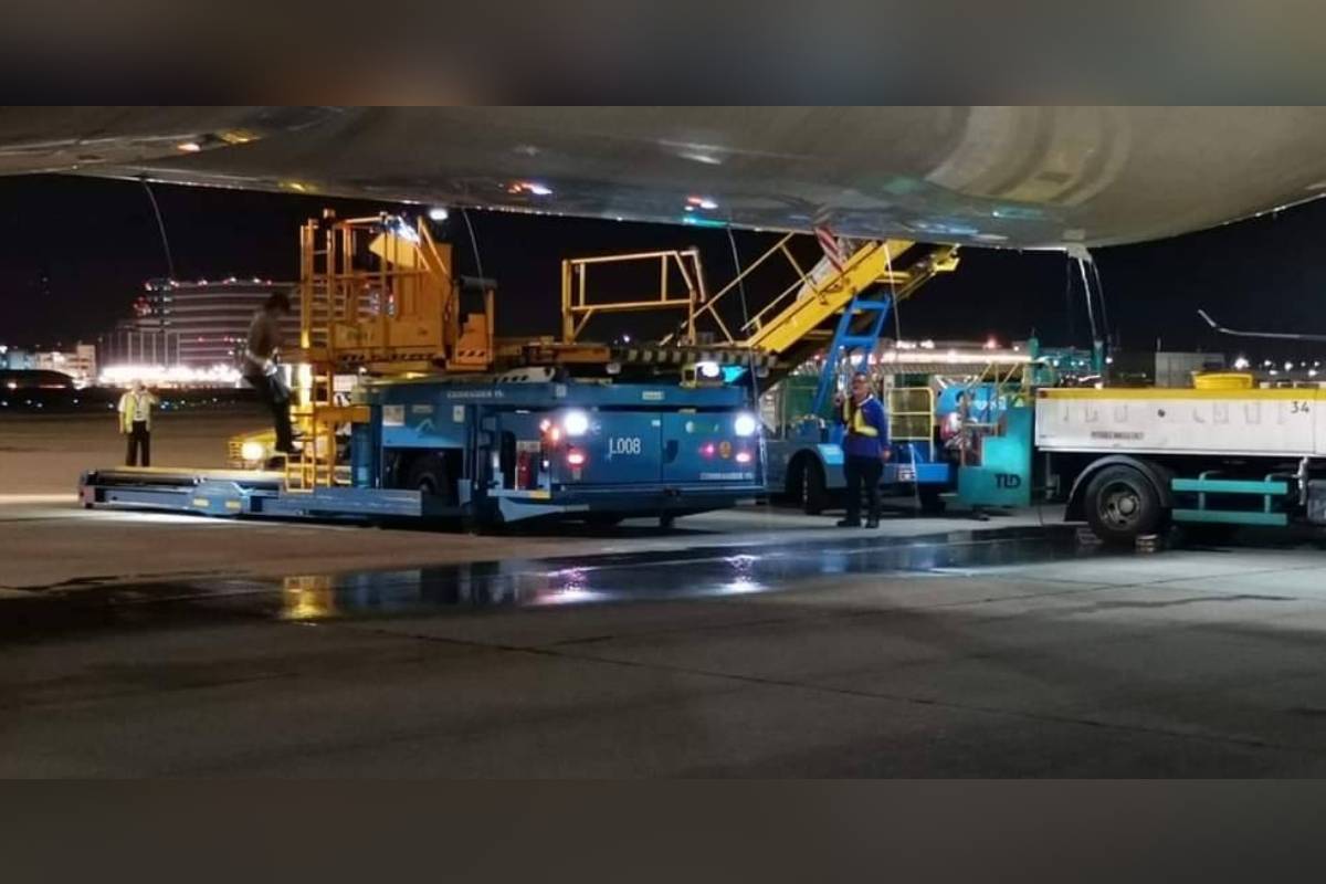 從網上圖片可見,涉事飛機底部多處出現漏水,有人更稱情況儼如「水舞間」。國泰航空今午回覆本報表示,原定今日 (26日)淩晨由香港前往洛杉磯的CX880航班,因航機其中一個水箱在注水期間出現洩漏,須延遲啟程,而水箱洩漏乃因損壞而致。其後已安排另一架航機接載乘客,為配合洛杉磯國際機場的夜間宵禁措施,CX880航班已於今午12時13分啟程。