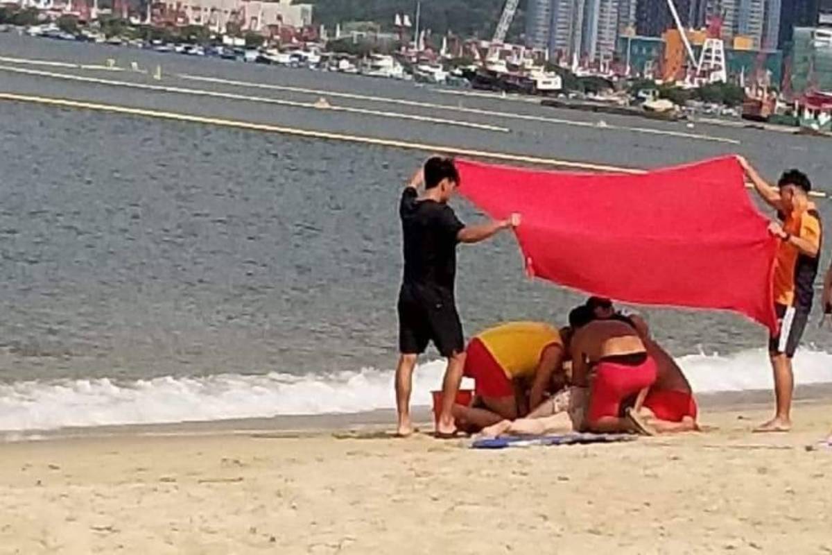 港九拯溺員工會在社交平台專頁的帖文指,男事主今早被發現時懷疑遇溺,俯伏在沒有救生服務的新咖啡灣泳灘離岸約15米海面,旁邊黃金泳灘救生員隨即敲響警鐘並前往拯救。男事主被救回岸上呈昏迷狀態,呼吸停頓及只有微弱脈搏,救生員立即為其急救,漸漸回復知覺。@