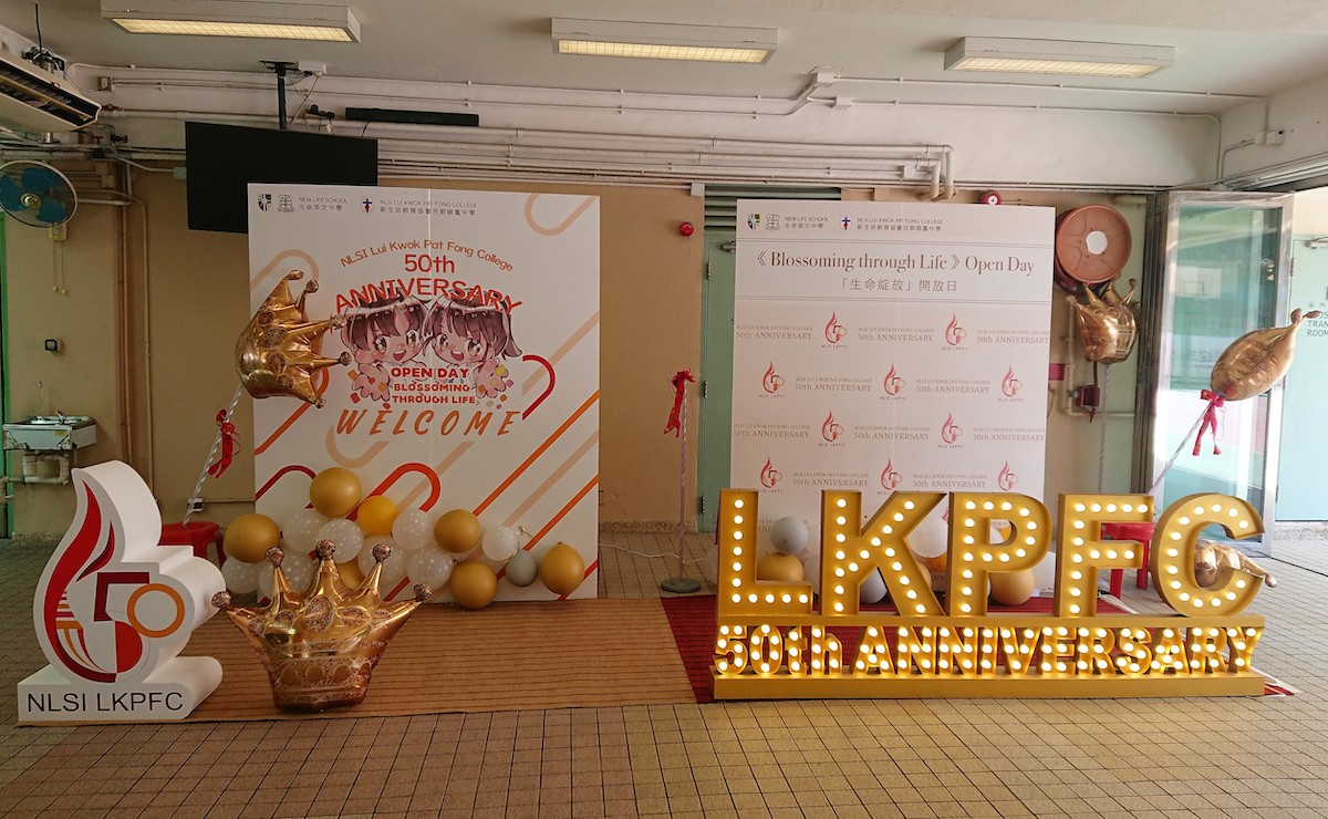 至於五十周年金禧校慶開放日以「生命綻放」為題,學校禮堂用作中一資訊講座外,其他所有課室及特別室均開放作不同用途。例如在課室方面,各層課室均用作各學術科目、學生活動、學生組織、宗教信仰及生命教育的展覽。在特別室方面,圖書館開放參觀,視藝室有視藝展,地理室有創意農業展,家政室有健康飲食展等等,最特別的是地下的學生活動中心,校方用作製成漫步時間長廊及文物展覽,展出學校的歷史介紹及過去數十年的文物等,需然是臨時的安排,卻是介紹詳細及展品豐富的一次。◇