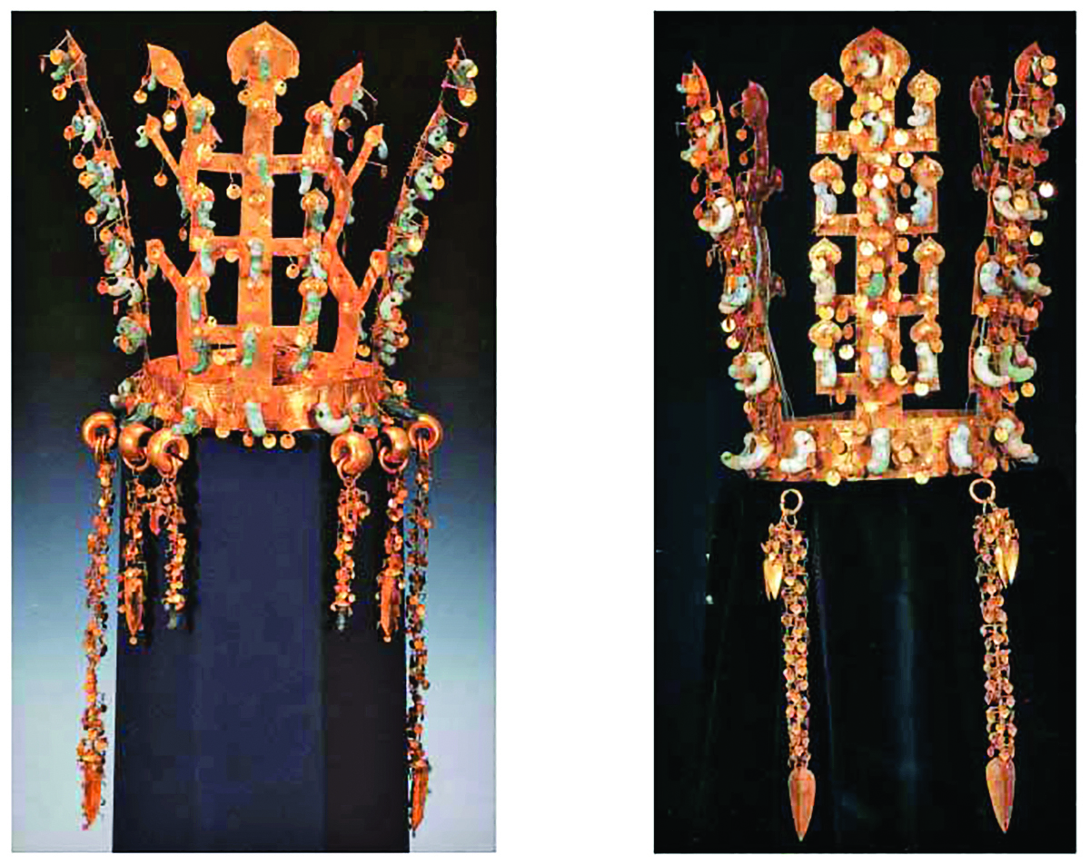 步搖並不是中華王朝獨有的貴族飾品,它大概源於西方,向東傳播中華、日本、朝鮮等地,因而在中華大地之外的國家,出土了許多精緻璀璨的黃金王冠,冠上竟然也有酷似步搖的綴飾。