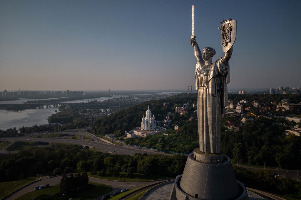 周日(8月6日),烏克蘭把位於基輔的知名地標「祖國之母」(Motherland Monument)雕像上的蘇聯國徽,換為烏克蘭三叉戟國徽,這是該國擺脫共產主義陰影的又一明顯舉動。