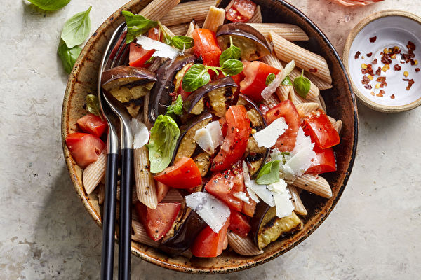 作者簡介:EatingWell雜誌&網站,推廣飲食健康的生活。本文首發在EatingWell,授權中英文《大紀元時報》轉載,英文報道請見:Simplify Your Dinner With Grilled Eggplant and Tomato Pasta