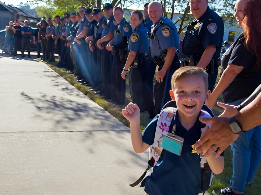 日前,美國路易斯安那州一名殉職警員的幼子迎來第一天上幼兒園的重要日子,令人欣慰的是,他父親生前的許多同事親自開警車到他家門口接他,並準備一路護送他到學校,場面相當感人。