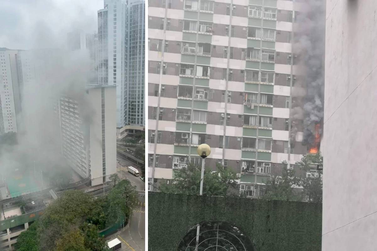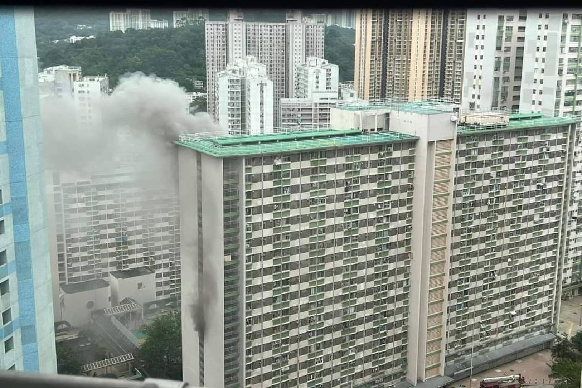 葵涌大窩口邨富國樓今午(7日)發生火警,消防員趕抵現場開喉灌救,現場不少住戶自行疏散至安全地方。
